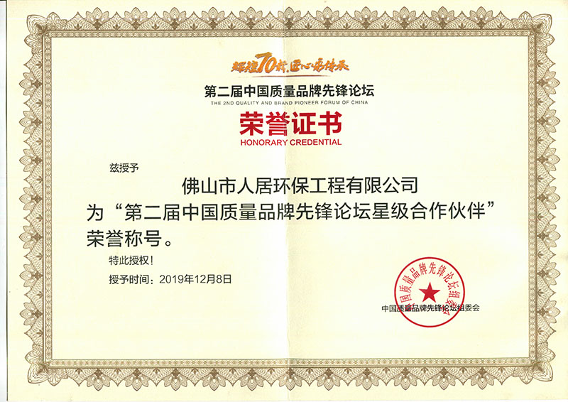 1-2 第二届中国质量品牌先锋论坛星级合作伙伴证书(2019年12月8日)